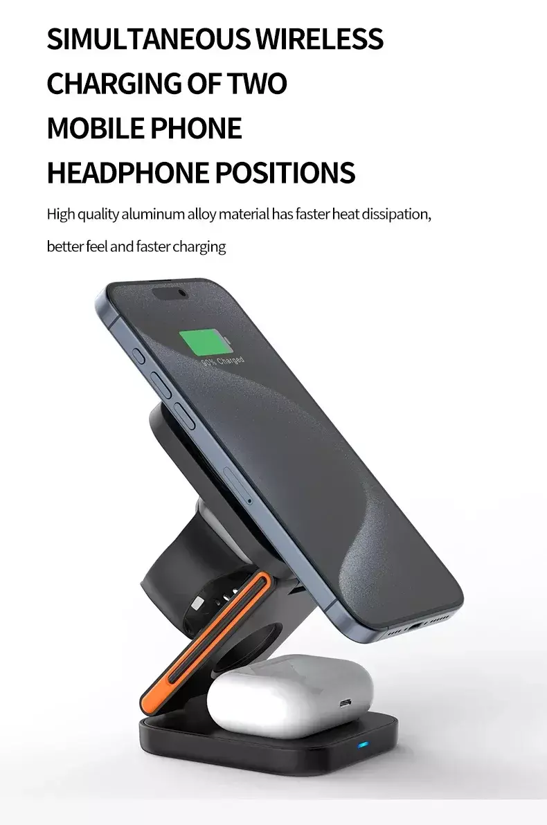 ?Carregador sem fio 3 em 1?:A estação de carregamento sem fio 3 em 1 para carregador Apple MacSafe para vários dispositivos é uma ótima opção para organizar sua casa, escritório ou sala de reuniões.Ele permite que você diga adeus aos cabos emaranhados e bagunçados, mantendo seu espaço limpo e organizado, tornando-o uma solução de carregamento conveniente para seu estilo de vida agitado.